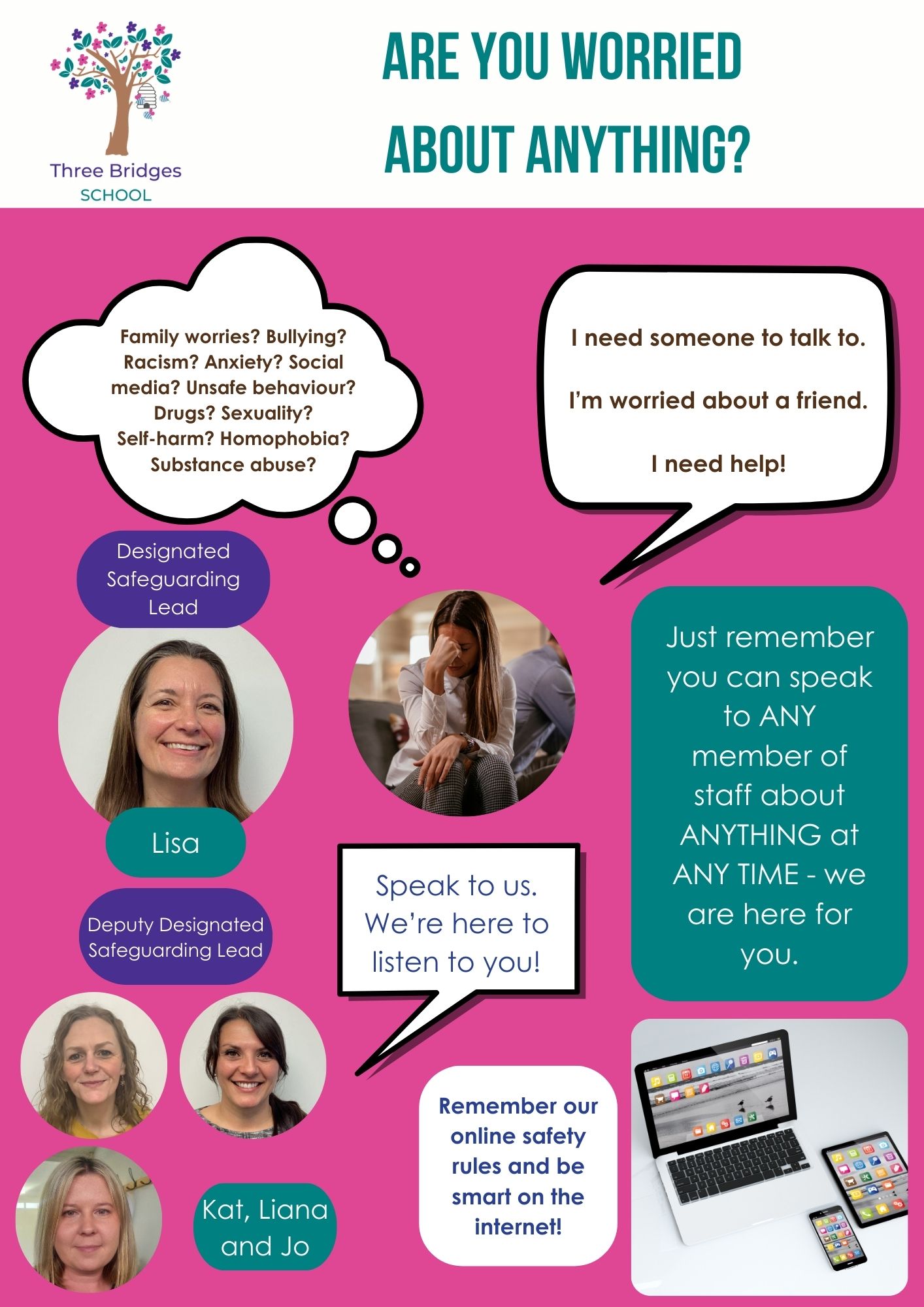 - You can talk to any adult in the school about anything. Do not keep your concerns to yourself; nothing is too small or too big.